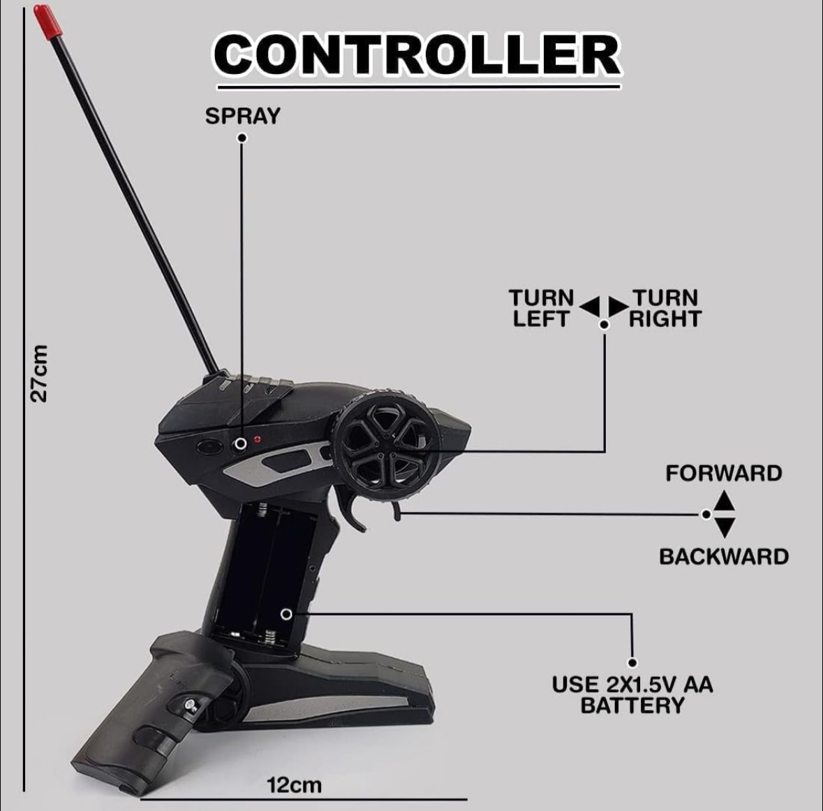 • Full-function remote control (forward, reverse, left, right)